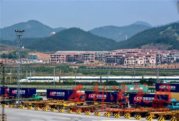 4月15日,浙江義烏西站鐵路口岸,準備通過中歐班列發(fā)往國外的集裝箱。“統(tǒng)一品牌中歐班列”作為國際貨物聯(lián)運的新型組織方式,已成為沿線各國加強基礎設施互聯(lián)互通、提升務實合作水平的重要載體和推進“一帶一路”建設、促進共問繁榮發(fā)展的重要平臺。