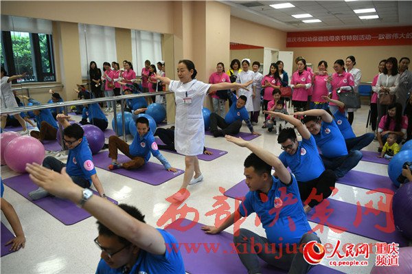 準(zhǔn)爸爸們在現(xiàn)場一起練習(xí)孕婦瑜伽。準(zhǔn)爸爸們在現(xiàn)場一起練習(xí)孕婦瑜伽。