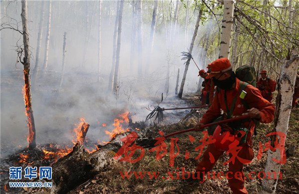 5月18日,武警內(nèi)蒙古大興安嶺森林支隊(duì)官兵在那吉林場(chǎng)滅火。