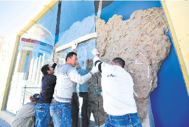 哈密科考隊(duì)隊(duì)員周紅嬌介紹,從2006年起,科考隊(duì)在哈密魔鬼城一帶搜尋早白堊紀(jì)翼龍以及其它恐龍化石,2016年10月,科考隊(duì)在魔鬼城發(fā)現(xiàn)了這個(gè)化石界的“大塊頭”。當(dāng)時(shí)我們是在一處坍塌的雅丹地貌上發(fā)現(xiàn)的,已被風(fēng)化得很嚴(yán)重,如不及時(shí)保護(hù),很可能會(huì)受到更大損害。在與哈密博物館協(xié)商后,于當(dāng)年11月16日,將其運(yùn)送到哈密博物館,今年4月份開始修復(fù)。”周紅嬌說,修復(fù)時(shí),先使用機(jī)械設(shè)備清理化石周圍的圍巖,因?yàn)轱L(fēng)化比較嚴(yán)重,表層比較脆弱,因此修復(fù)時(shí)要十分小心,最后用氣吹和手捻手動(dòng)清理。清理完畢后,會(huì)噴涂一層保護(hù)膠,用來保護(hù)化石。