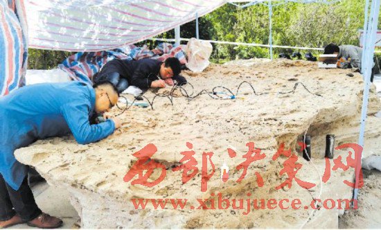 考古隊(duì)隊(duì)員正在清理化石周邊的圍巖。