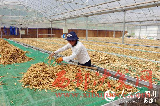 四川省巴中市巴州區(qū)寨子包村金大寨種養(yǎng)合作社的員工正從曬干的川明參中篩選優(yōu)質(zhì)產(chǎn)品。