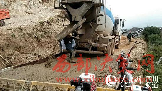 一條平坦寬闊的水泥路正一步步向遠(yuǎn)處延伸。沿公路建設(shè)工地行進(jìn),砌堡坎、填水氹……處處是干部群眾熱火朝天修路的勞動(dòng)場(chǎng)面。