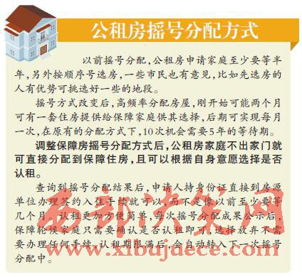 保障性住房搖號分配方式改變后,公布了房源,保障家庭需要提前到現(xiàn)場了解房源情況,因為如此高頻率的搖號分配,基本上沒有停頓周期,無法在選定住房后再進行換房。