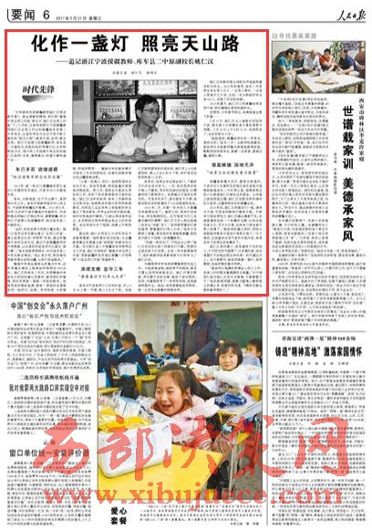 “為傳承和發(fā)揚(yáng)援疆教師姚仁漢同志教書育人、敬業(yè)奉獻(xiàn)的精神,我們把‘鎮(zhèn)海中學(xué)名師工作室’更名為‘姚仁漢名師工作室’了。”5月底,記者來(lái)到浙江寧波援疆教師姚仁漢生前工作過(guò)的新疆庫(kù)車縣第二中學(xué)采訪,這里的師生對(duì)這位可親可敬又善良的“姆艾力姆”(維吾爾語(yǔ):老師)感念至深。浙江寧波第九批援疆教師、庫(kù)車縣二中副校長(zhǎng)戎驍和他的同事們以這種特殊的方式,把今年2月因病不幸去世的姚仁漢老師(見圖,資料照片)的接力棒傳遞下去……