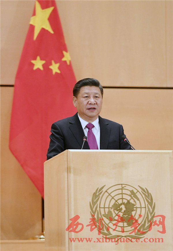 2017年1月18日,國家主席習近平在瑞士日內(nèi)瓦萬國宮出席“共商共筑人類命運共同體”高級別會議,并發(fā)表題為《共同構建人類命運共同體》的主旨演講。(記者 饒愛民 攝)