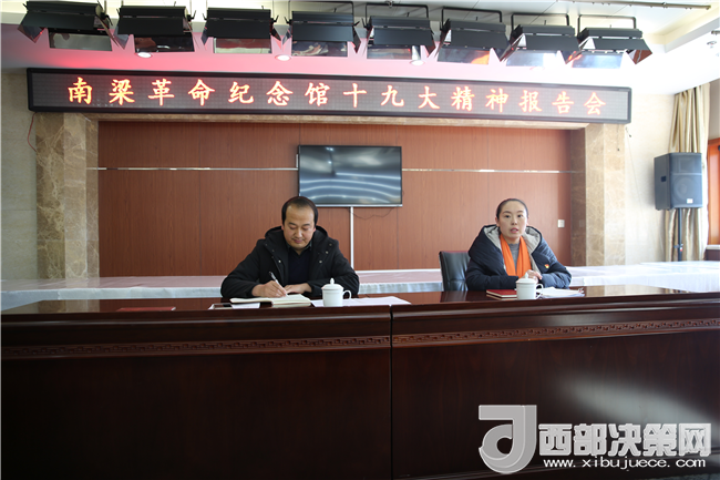 西部決策網(wǎng)-西部大開發(fā)訊(帥華鋒 李海瑞 通訊員 趙高銪)近日,南梁革命紀(jì)念館組織召開黨的十九大精神宣講報(bào)告會(huì),會(huì)上館長(zhǎng)聶明靜作重要講話,黨的十九大代表、副館長(zhǎng)王雅麗作黨的十九大精神宣講報(bào)告,并開展陜甘邊黨史理論綜合考核工作,各部門負(fù)責(zé)人以及基層各景點(diǎn)管理員50多人參會(huì)。
