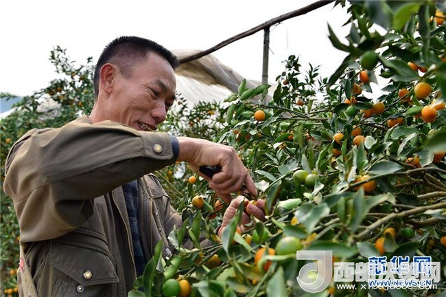近年來,廣西融安縣因地制宜,把金桔列為扶貧增收的重要產(chǎn)業(yè),通過農(nóng)業(yè)獎補政策、專業(yè)種植技術(shù)培訓(xùn)等鼓勵貧困戶種植金桔,助力脫貧。融安縣大將鎮(zhèn)雅仕村的貧困戶漆昭賢,曾常年在外地打工,生活條件艱苦。2014年在縣里政策引導(dǎo)下,他返鄉(xiāng)種植金桔,并獲得專項補貼和無息貸款,連續(xù)三年參加縣農(nóng)業(yè)局等單位舉辦的種植技術(shù)培訓(xùn)班。如今,漆昭賢不僅在自己的地里種金桔,還承包了周圍農(nóng)戶的土地,種植面積十余畝,今年預(yù)計產(chǎn)量可達16000斤,純收入有望達到4萬元。記者李絢麗攝