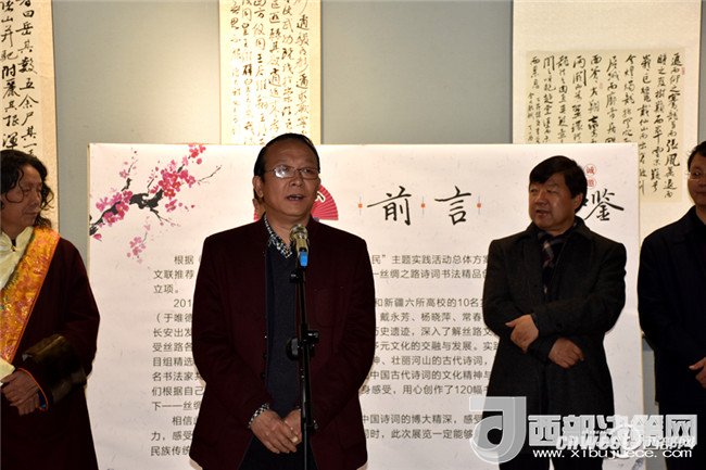 由于孟晨、程建虎著作,陜西新華出版集團三秦出版社出版的“和天下——絲綢之路詩詞書法創(chuàng)作精品集”在展覽開幕式上同時發(fā)行。陜西師范大學(xué)書法文化研究院秘書長李衛(wèi)東,西安交通大學(xué)書法系博士生導(dǎo)師楊鎖強教授,陜西省文聯(lián)組聯(lián)部部長王行舟,陜西省書法家協(xié)會副主席劉偉群以及省內(nèi)外各界書法愛好在500余人出席了開幕式。開幕式和研討會由中國書協(xié)理事,省書協(xié)常務(wù)副主席,中國書法學(xué)院院長于唯德教授主持。甘肅省書協(xié)副主席王青彥做主題發(fā)言。