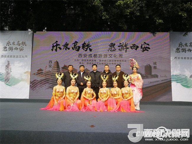 2017年12月13-17日,由西安市旅游發(fā)展委員會、西安曲江新區(qū)管理委員會主辦,西安曲江文化旅游股份有限公司承辦的“樂乘高鐵·惠游西安”西安5折歡游季西成高鐵系列路演活動,分別在廣元利州廣場、綿陽鐵牛廣場、成都寬窄巷子?xùn)|廣場、重慶觀音橋廣場等地精彩上演。巡演向四川、重慶的父老鄉(xiāng)親們介紹了西安豐富的旅游資源,展現(xiàn)了千年古都地靈人杰的文化底蘊和生氣盎然的城市魅力。四城路演活動共吸引了近五萬當?shù)厥忻裼慰汀?