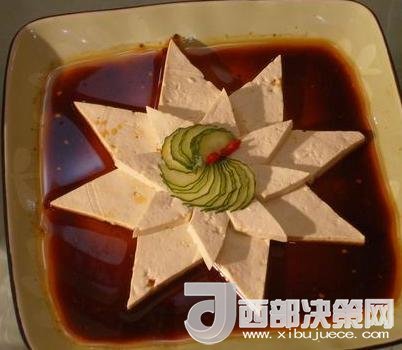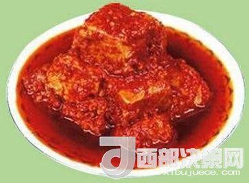 上元觀是城固縣的一個鎮(zhèn)。當?shù)厝艘詢?yōu)質黃豆為原料,以漿水(即鹵水)點制豆腐;壓榨后將豆腐切成一寸見方,恒溫發(fā)酵;以食鹽、花椒、大香、紅叩、桂皮、良姜、砂仁等30多種調味品浸拌腌漬后晾干;再用大曲酒、辣醬調制混合入壇密封。壇體埋入地下二次發(fā)酵,存放三年而成。豆腐外現(xiàn)棗紅色,內呈黃色,松軟、細膩、咸辣不出頭、清香爽口。