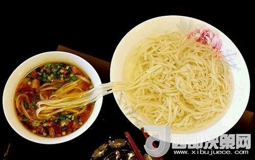 戶縣擺湯面是在具有悠久歷史的關中臊子面的基礎上,創(chuàng)新而成的一種面食后起之秀。戶縣當?shù)赜校?ldquo;下到鍋里蓮花轉,撈到碗里疊絲線,吃到口里嚼不斷,咽到肚里香半年”的歌謠,專門夸贊擺湯面的美味。