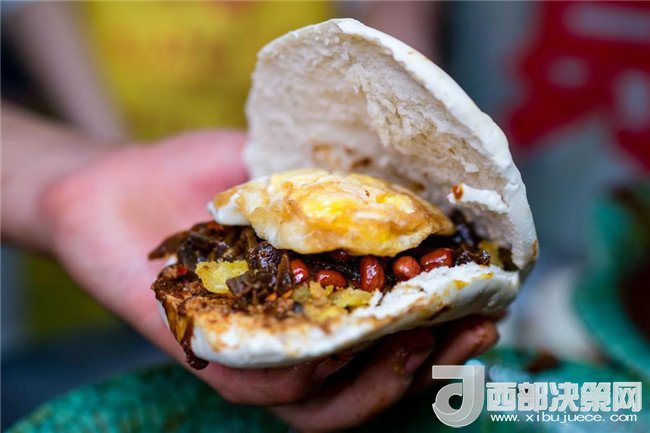 老金家蛋菜夾饃:嘗一口后你就愛上了這個(gè)夾饃,蛋黃一點(diǎn)都不咸而且口感還是面沙的,玫瑰咸菜是從小就愛吃的東西。