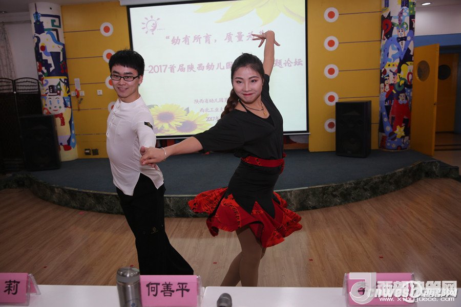 論壇上,西安市浐灞第二幼兒園的謝曉鳴和孩子們帶來的街舞表演點燃了全場,讓大家感受到幼兒園男教師的熱情和激情;陜西師范大學幼兒園的韓凱帶來的鋼琴演奏《一壺美酒》傳達了深切的情感,讓人回味無窮;西航天鼎保育院的趙棟用挺拔健美的身姿表演的拉丁串燒,展現(xiàn)了生命自信的力量;電信十所幼兒園的孫博一只單簧管演奏,吹出了男教師細致柔情的一面;西安市雁塔區(qū)第一幼兒園的陳曉峰演唱的《祖國,慈祥的母親》讓我們領(lǐng)略了幼兒園男教師專業(yè)的唱功和對職業(yè)的自信;西北工業(yè)大學幼兒園教師董樂帶領(lǐng)小朋友展示了動感的啦啦操和籃球活動,場上的小運動員自信的運球、上籃、投球,矯健的身姿,專注的表情,默契的配合,感染著在場的每一位教師;西安市第五保育院肖波和陜西睿星體育一群陽光帥氣的男教師組織的趣味體能游戲?qū)⒒顒託夥胀葡蛄烁叱薄?/p>