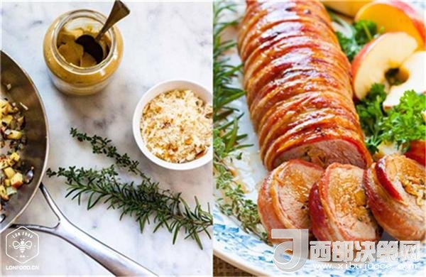 口感細(xì)膩的里脊肉中間,夾雜一些清爽的蘋果洋蔥粒、粗糧面包屑,再在外圍包裹一圈煙熏培根,這層層的誘惑想必沒有人可以抵擋得住。