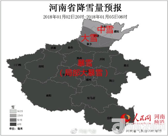 人民網(wǎng)鄭州1月2日電(戚藝芳)瑞雪兆豐年,河南將迎2018年首場(chǎng)強(qiáng)降雪。據(jù)河南省氣象臺(tái)最新消息,從2日夜間河南將開啟暴雪模式!-12℃+5級(jí)大風(fēng)+25cm積雪,可謂是入冬以來(lái)范圍最大、強(qiáng)度最強(qiáng)的降雪過(guò)程。