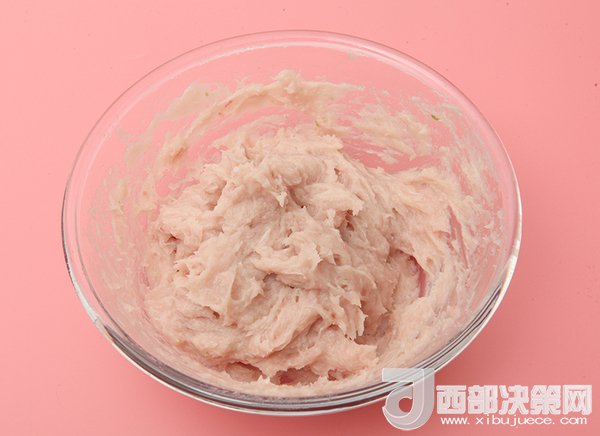 3、調(diào)入少許鹽、淀粉、蛋清攪拌均勻。然后加入水(比例大概魚3:水1),用筷子順著一個方向攪拌上勁。