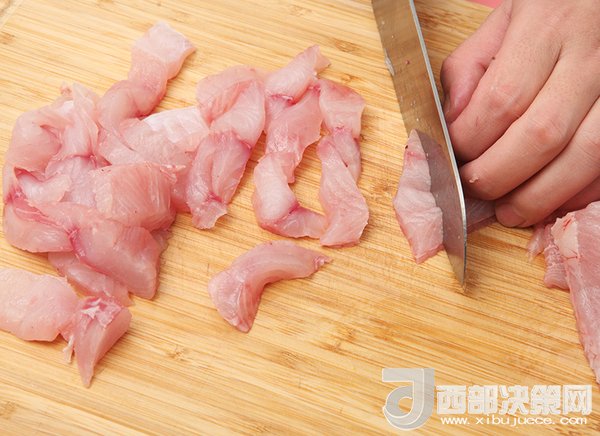 1、告訴魚攤老板你要做魚丸,他就會幫你把魚去骨去刺去魚皮,然后片成魚條?;貋砬逑锤蓛?,把魚肉切片。