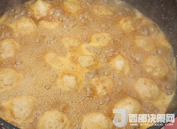1、加入咖喱塊后,醬汁會稠稠的,可以沾著魚丸吃或者拌飯都很棒。