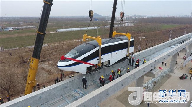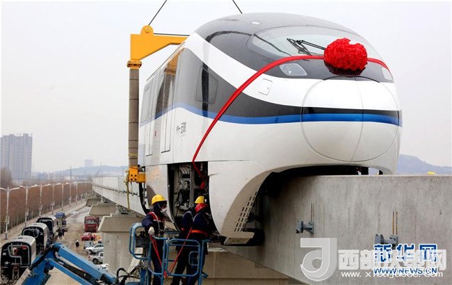 1月3日,在山東省鄒城市,工作人員進行旅游云軌“孔孟旅游快線”機車上梁作業(yè)。當日,孔子故里曲阜、孟子故里鄒城之間的云軌“孔孟旅游快線”完成機車上梁作業(yè)。這條旅游快線串聯(lián)起“三孔”景區(qū)、高鐵曲阜東站和曲阜南站、九龍山景區(qū)、孟廟孟府景區(qū)等。云軌是中國首條自主知識產(chǎn)權(quán)的跨座式單軌列車,類似于“空中小火車”,最高時速可達80公里。(呂衛(wèi)鋒 攝)