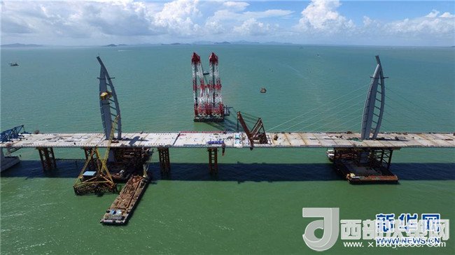 港珠澳大橋上的“中國結(jié)”造型橋塔(2017年7月5日攝)。記者 梁旭 攝