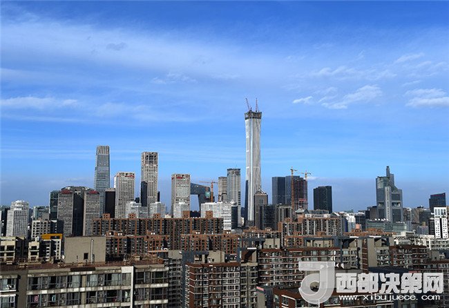 這是藍(lán)天白云下的北京CBD(2018年1月22日攝)。新華社記者 羅曉光 攝