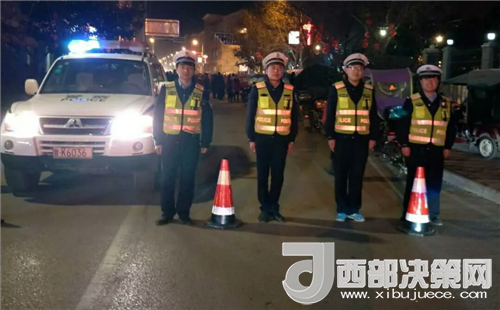 晚會期間,數(shù)千群眾從農(nóng)村各鄉(xiāng)鎮(zhèn)匯聚到兩當城區(qū)觀看晚會,使城區(qū)的交通壓力驟然增大。為了確保晚會期間道路交通的有序暢通,做到萬無一失,交警大隊領導高度重視,提前安排部署,并對安保工作提出了具體要求。
