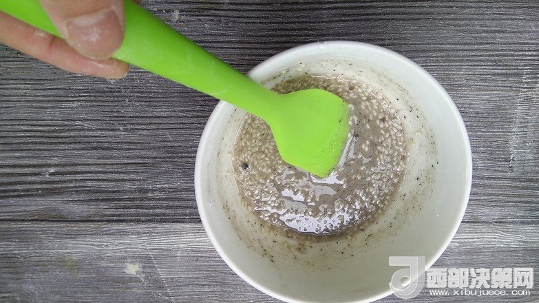 9.表層刷少許水撒上芝麻用手心壓實