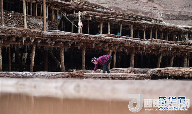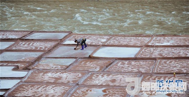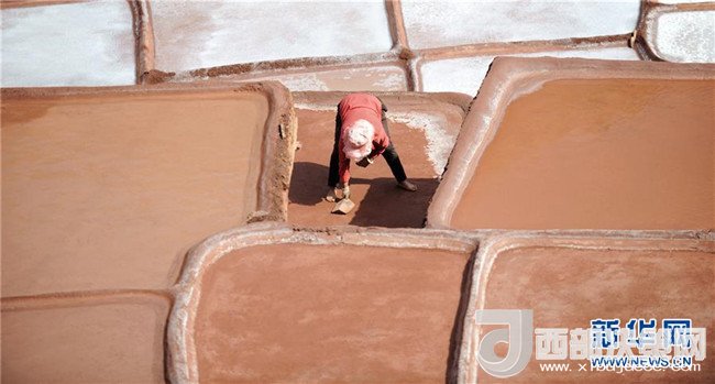 鹽農(nóng)在打理自家的鹽田(3月11日攝)。位于西藏東南部與滇北高原毗連處的昌都芒康縣鹽井古鹽田,是至今仍保持最原始手工曬鹽方式的鹽田。據(jù)史料記載,早在唐朝時期這里就開始曬鹽。目前該處有鹽田3000多塊,從事鹽業(yè)生產(chǎn)的居民有300多戶。當?shù)厝罕娫跒憸娼祥_山鑿井,取出巖層深處含鹽的鹵水倒入鹽田,經(jīng)陽光蒸曬、風(fēng)干,結(jié)晶成鹽。新華社記者晉美多吉攝