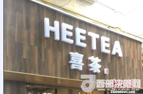 資料圖:在店鋪門頭上抄襲使用與“喜茶”中文商標(biāo)相同、與“Heytea”英文商標(biāo)近似的組合標(biāo)識(shí)。供圖 申海 攝