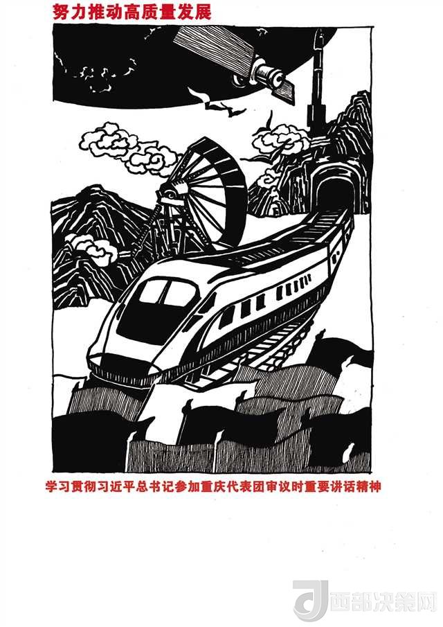 “每一個(gè)畫面,每一個(gè)細(xì)節(jié)都凝聚了師生們的心血。”版畫系副主任韋嘉介紹,13日上午,學(xué)院組織召開了黨委理論學(xué)習(xí)中心組(擴(kuò)大)會(huì)議,專題學(xué)習(xí)習(xí)近平總書記參加重慶代表團(tuán)審議時(shí)重要講話精神。會(huì)后,校黨委書記黃政、校長龐茂琨、校黨委副書記左益、學(xué)校宣傳部部長賈安東、學(xué)校思政部主任陳勇、版畫系黨總支副書記陳斌等人對文字方案進(jìn)行了反復(fù)討論,最終確定了相關(guān)主題。16名學(xué)生和版畫系9名教職工黨員當(dāng)晚便開始參與作品創(chuàng)作。