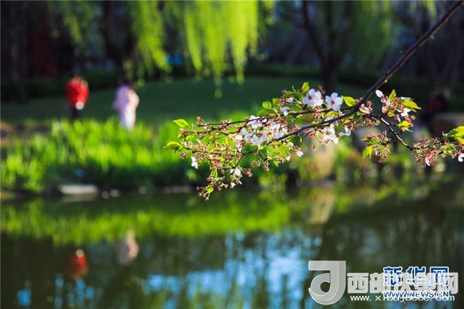 3月28日,游人在江蘇揚(yáng)州瘦西湖景區(qū)賞花。(濮良平 攝)