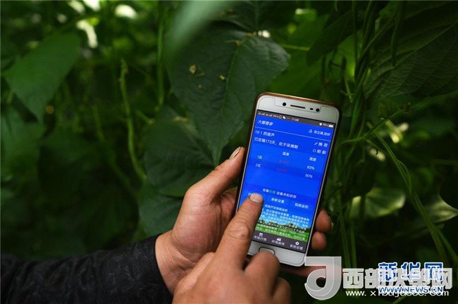 4月18日,甘肅省酒泉市肅州區(qū)總寨鎮(zhèn)總寨村村民范立德使用手機(jī)查看日光溫室的實(shí)時(shí)數(shù)據(jù)。