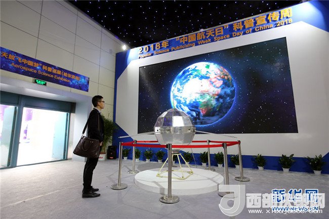 一位航天愛好者在駐足觀看。新華網(wǎng)才萌攝