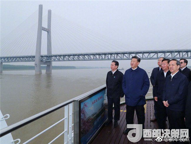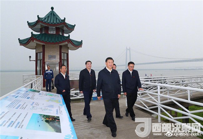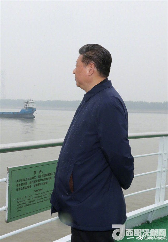 25日上午,習(xí)近平總書記驅(qū)車一個(gè)半小時(shí),從宜昌前往荊州。在荊州港碼頭登上輪船,順江而下,察看長(zhǎng)江沿岸生態(tài)環(huán)境和發(fā)展建設(shè)情況,聽取長(zhǎng)江航運(yùn)和航道治理、河勢(shì)控制和護(hù)岸工程、非法碼頭整治等情況匯報(bào)。