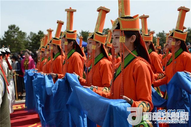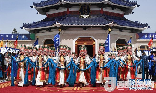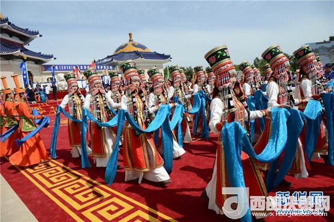 5月6日,在成吉思汗陵,身著盛裝的姑娘手捧哈達(dá)進(jìn)行祭祀活動。新華社記者 鄒予 攝