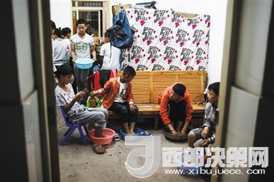 睡覺(jué)前,因?yàn)閷嬍覜](méi)有熱水,球隊(duì)里的小球員來(lái)到馬順洗的房間里洗腳。
