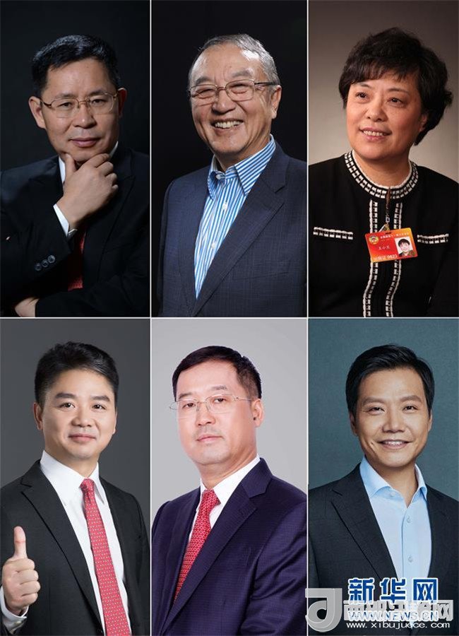 拼版照片:(上排由左至右)用友網(wǎng)絡董事長兼CEO王文京,聯(lián)想控股董事長、聯(lián)想集團創(chuàng)始人柳傳志,時代集團公司總裁王小蘭;(下排由左至右)京東集團董事局主席兼CEO劉強東,利亞德創(chuàng)始人李軍,小米科技董事長兼CEO雷軍。新華社發(fā)