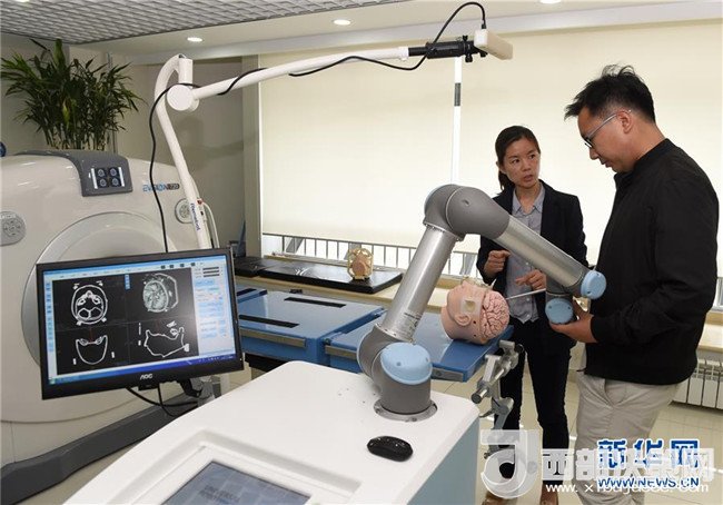 北京柏惠維康公司的工作人員在調試神經(jīng)外科手術機器人(2018年5月10日攝)。北京柏惠維康公司研制的神經(jīng)外科手術機器人在行業(yè)內(nèi)占據(jù)領先地位。 新華社記者羅曉光攝