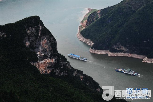 5月23日,船只行駛在長(zhǎng)江瞿塘峽一帶。 新華社記者 王全超攝