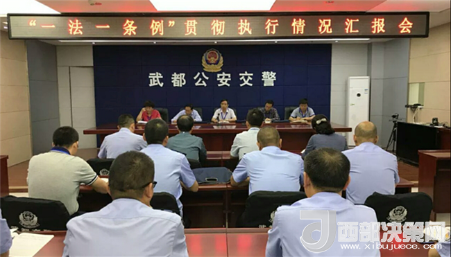 西部決策網(wǎng)——西部大開發(fā)訊 (帥華鋒 通訊員 馬存福 郭文靜) 5月25日,甘肅隴南市武都區(qū)人大常委會(huì)執(zhí)法檢查組帶領(lǐng)交通局、運(yùn)管局、綜合執(zhí)法局、安監(jiān)局等部門負(fù)責(zé)人,深入武都區(qū)公安局交警大隊(duì)督導(dǎo)檢查《中華人民共和國道路交通安全法》和《甘肅省道路交通安全條例》(以下簡(jiǎn)稱“一法一條例”)貫徹實(shí)施情況,大隊(duì)班子成員陪同檢查。