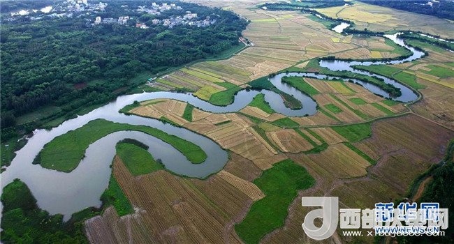 ??谑协偵絽^(qū)曲溪濕地(5月30日無(wú)人機(jī)拍攝)。