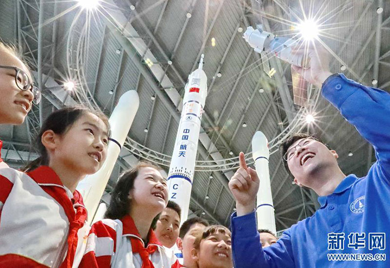 在河北秦皇島軍界·秦皇島軍事科學(xué)教育VR基地,秦皇島無線電管理局工作人員為海港區(qū)新一路小學(xué)學(xué)生講解無線電在航天領(lǐng)域的應(yīng)用(4月23日攝)。新華社發(fā)(曹建雄 攝)