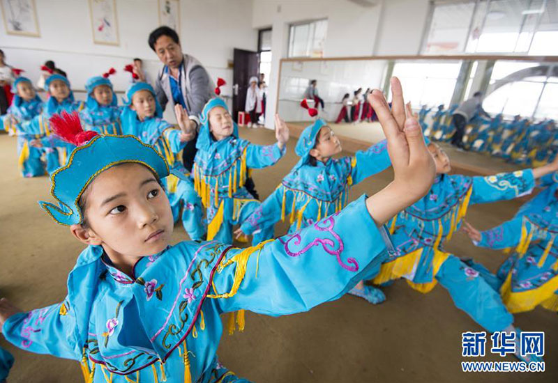 江蘇省南通市海安縣西場小學(xué)學(xué)生在練習(xí)京?。?月26日攝)。新華社發(fā)(徐勁柏 攝)