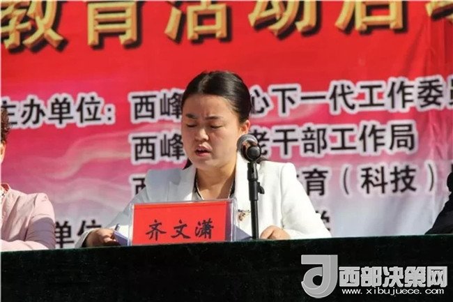 啟動儀式由西峰區(qū)人民政府副區(qū)長、關(guān)工委副主任齊文瀟主持,并作“傳承紅色基因,爭做時代新人”主題教育動員講話。她指出,開展“傳承紅色基因,爭做時代新人”主題教育活動,是為貫徹落實(shí)習(xí)近平新時代中國特色社會主義思想對關(guān)心下一代工作提出的新要求作出的重大部署和安排,主要目的在于引導(dǎo)廣大青少年認(rèn)清自己的“根”和“魂”,教育引導(dǎo)廣大青少年從紅色基因中汲取道德滋養(yǎng)和文化精髓,自覺踐行社會主義核心價值觀,堅定理想信念,為實(shí)現(xiàn)偉大復(fù)興的中國夢做出應(yīng)有的貢獻(xiàn)。