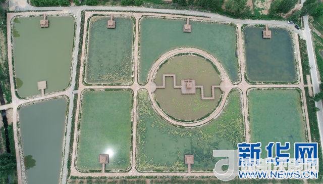 這是黃龍縣石堡鎮(zhèn)梁家河村生態(tài)魚塘(6月1日無人機拍攝)。