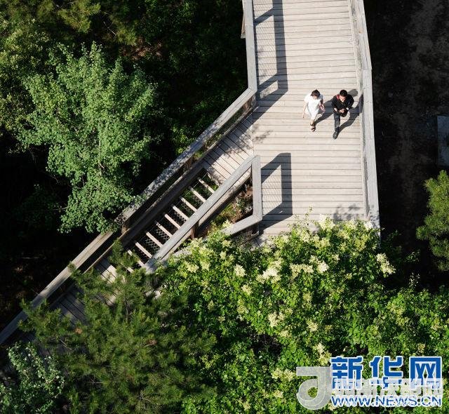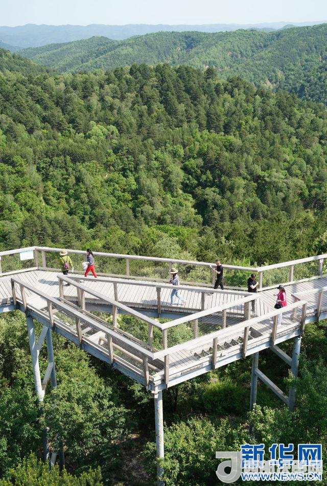 5月31日,游客在黃龍縣瓦子街鎮(zhèn)“樹頂漫步”景區(qū)內(nèi)游玩。新華社記者邵瑞攝