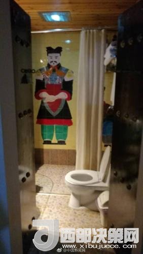 衛(wèi)生間墻壁上的兵馬俑圖案。微博截圖