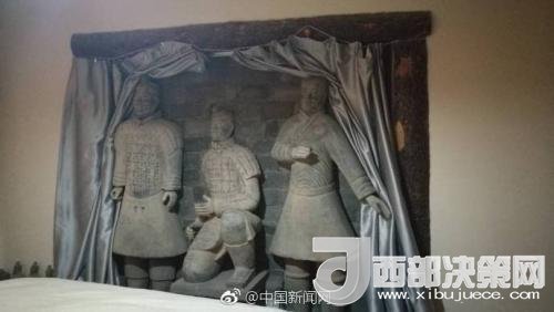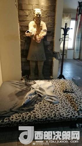 他告訴記者,“房子并不是我們裝修的,是原來房東做的”。“他是一個老西安人。從2008年就買下這處房子,因為他非常喜歡兵馬俑,就在裝修中加了很多兵馬俑元素進去。”