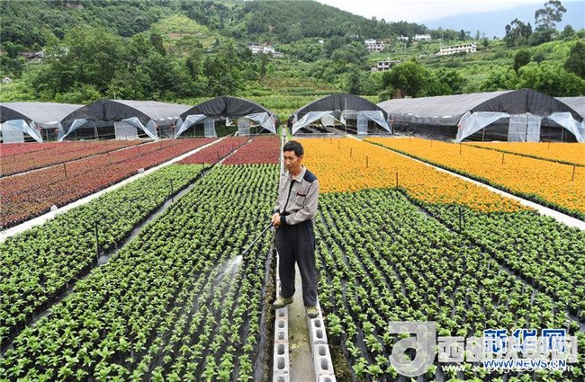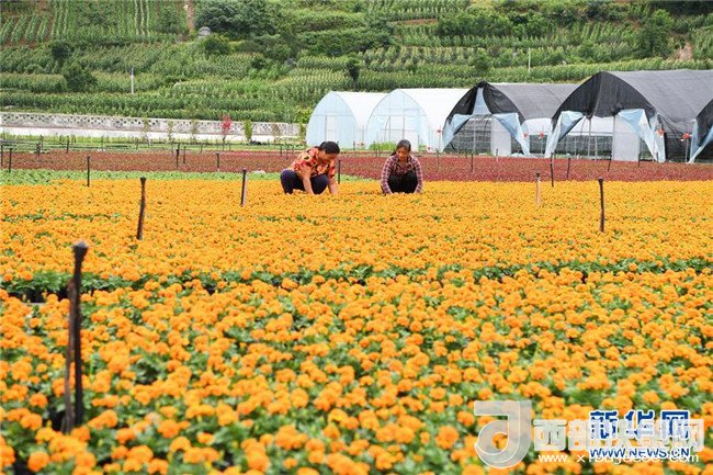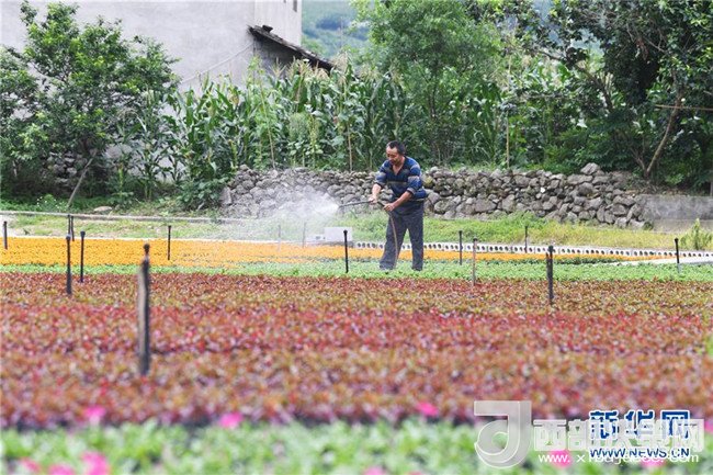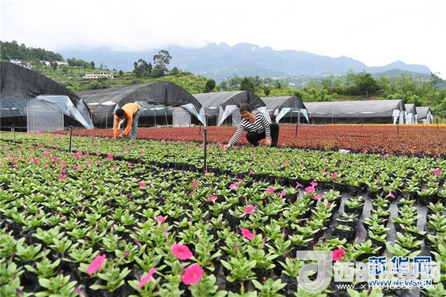 6月12日,艷山紅村村民在村里的花卉基地勞作。近年來,重慶市武隆區(qū)羊角鎮(zhèn)艷山紅村探索“公司+村集體+農戶+基地”的經(jīng)營模式,發(fā)展花卉種植等產業(yè),實現(xiàn)了“農村資源變資產、資金變股金、農民變股東”,幫助當?shù)剞r民通過保底分紅、效益分紅、務工收益等方式脫貧增收。新華社記者王全超攝